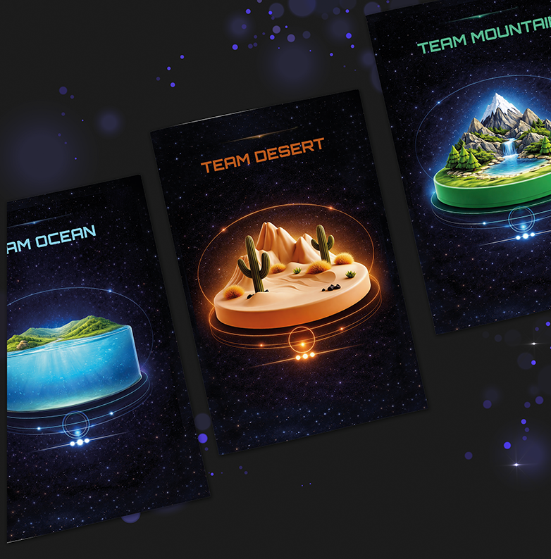 Le plateau de jeu, de grande dimension, a été conçu comme un outil de compréhension et d’échange. Le graphisme structure les informations, distingue les équipes et facilite l’appropriation des scénarios. Le travail collaboratif a permis de transformer une idée initiale en un jeu clair, cohérent et engageant.